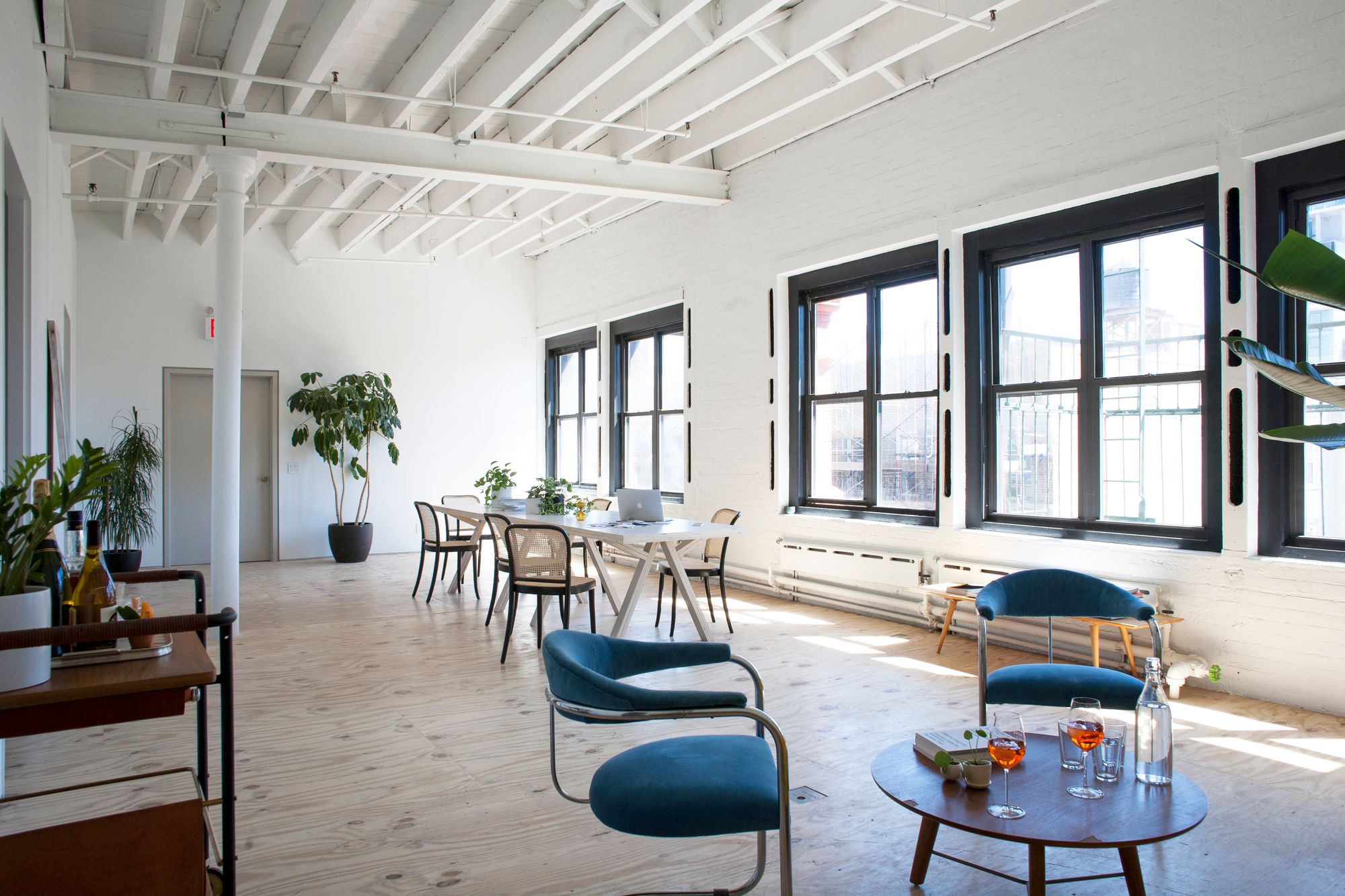 We saw the potential of having a vast, well-lit space, which motivated us to take over the first floor. We also fell in love with the neighborhood. Architecturally speaking, our concept was to offer a bright, open space that allowed for natural circulation and interaction among people, whether they were intentionally meeting for an event or serendipitously connecting while sharing a communal table or working in the lounge.
