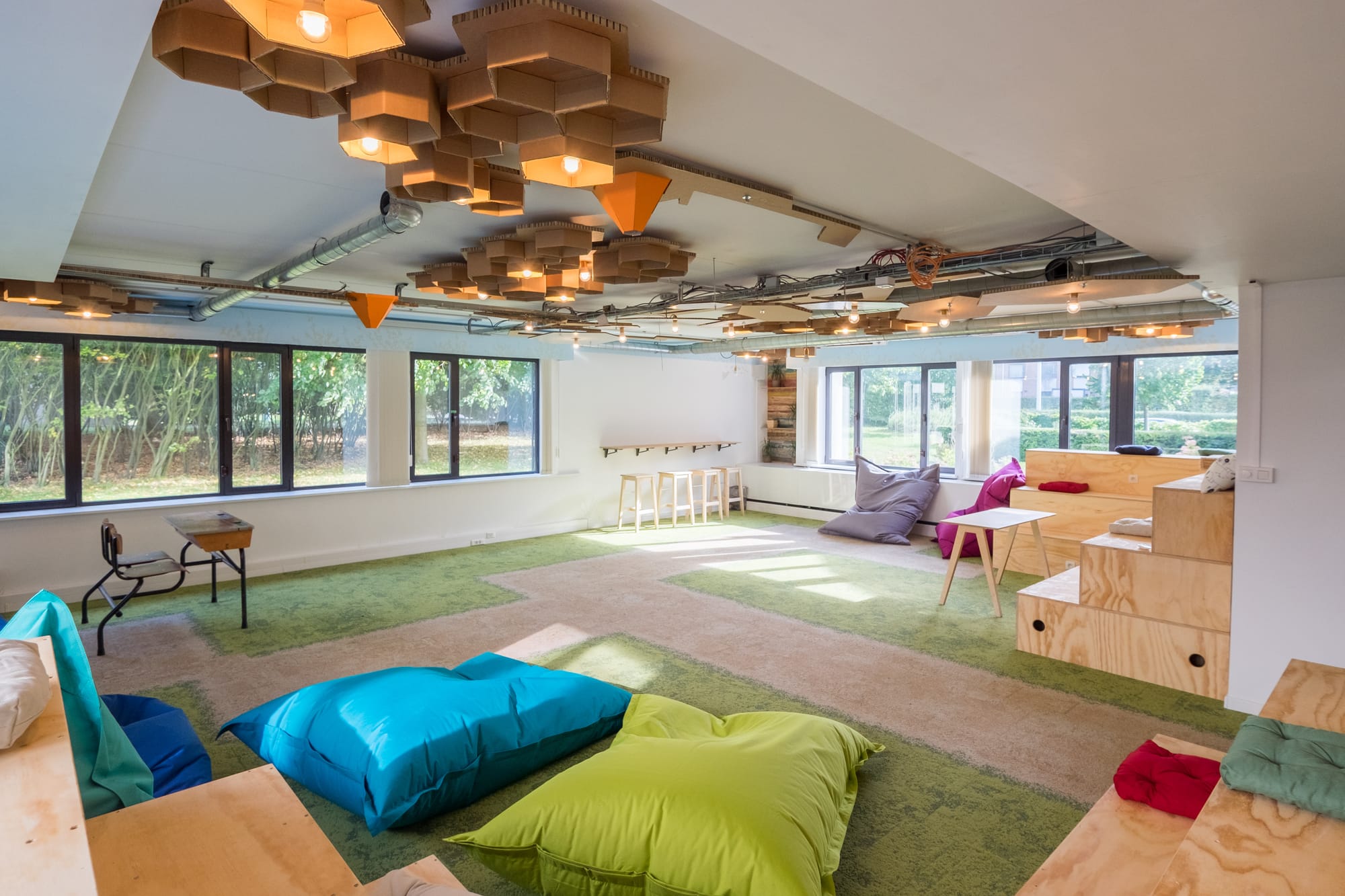 We initiated our sustainability efforts before it became a widespread trend because we believed it was logically important to consider our environmental and economic footprint. For instance, upcycling furniture or creating our own from preferred materials like wood felt instinctive to us. Each new project, especially within the coworking space, is seen as an opportunity to control costs and reuse materials.